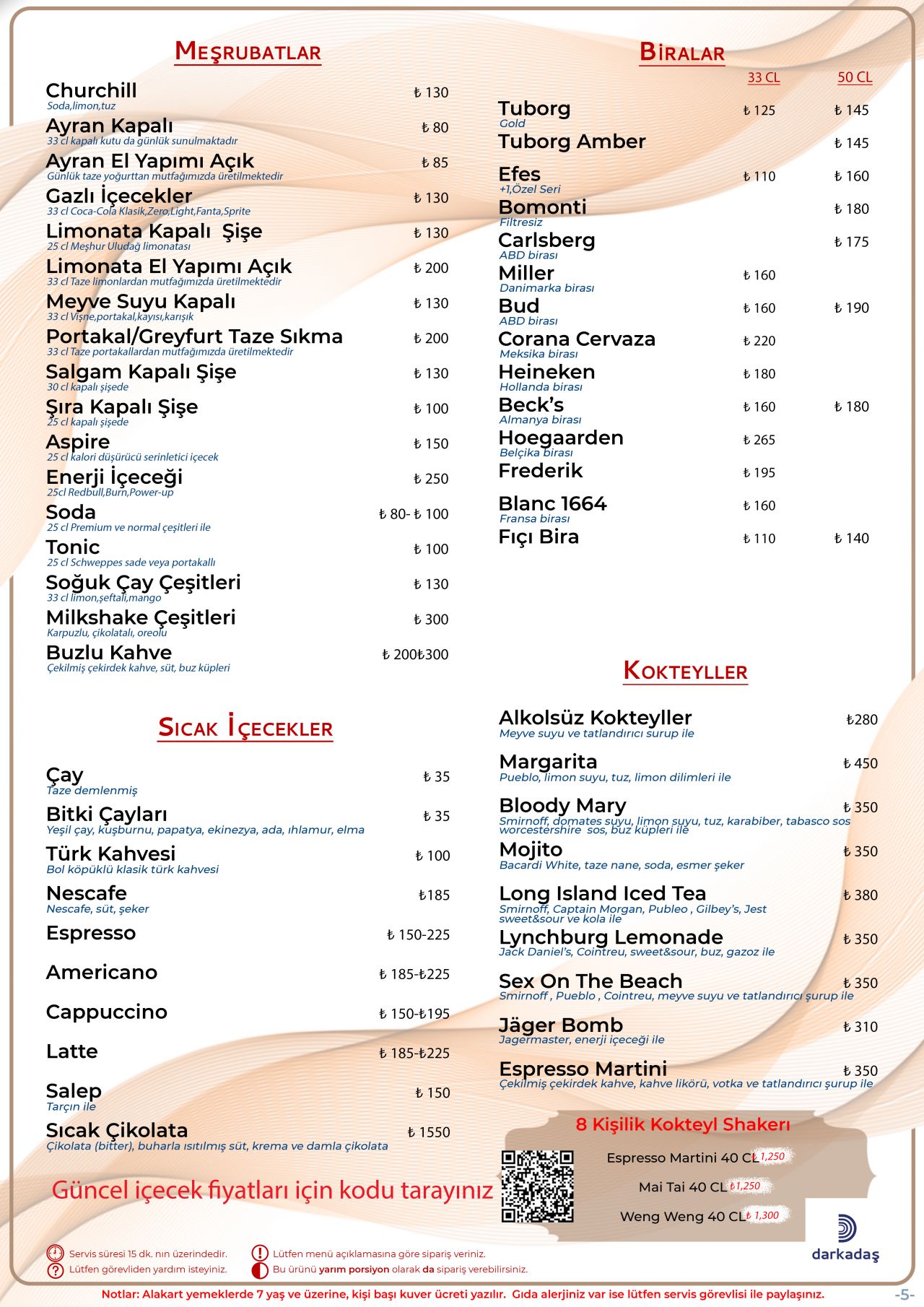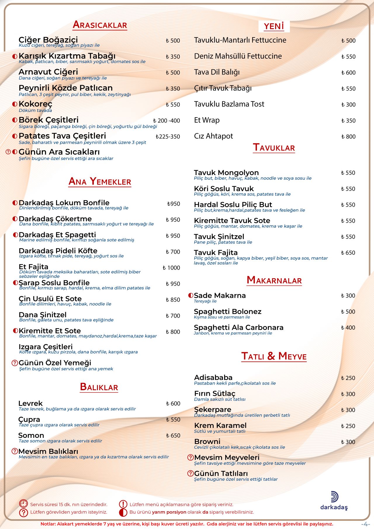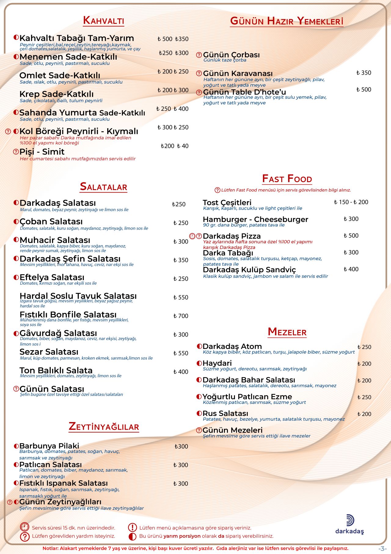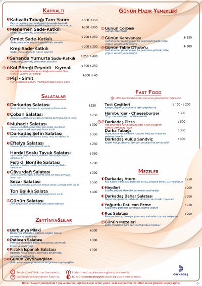 Günlük Table D'Hote Menüsü